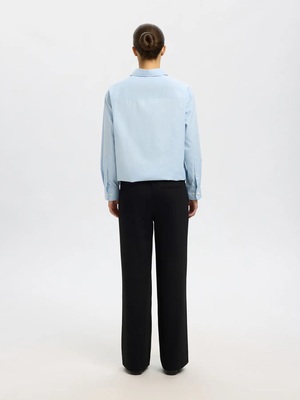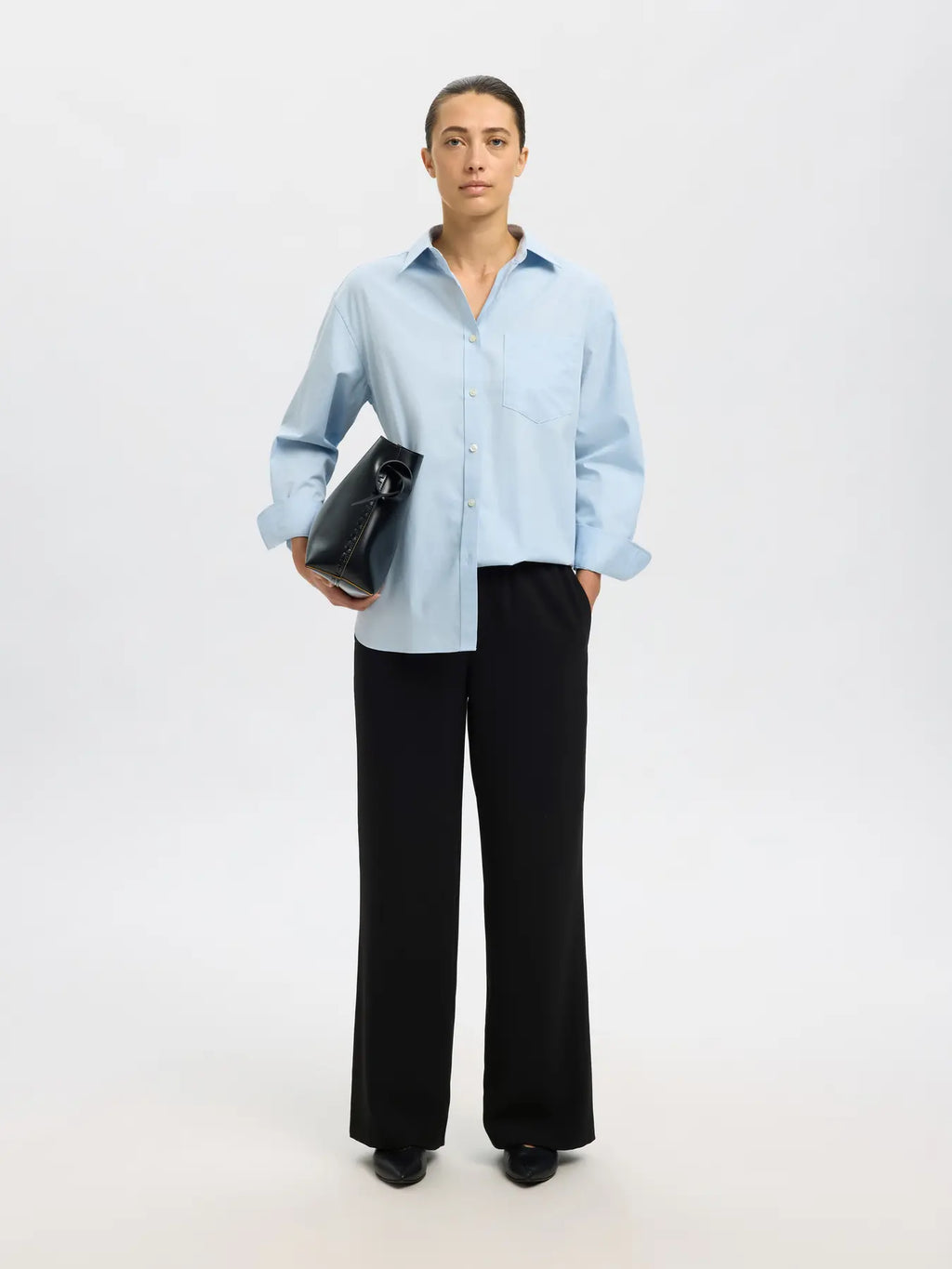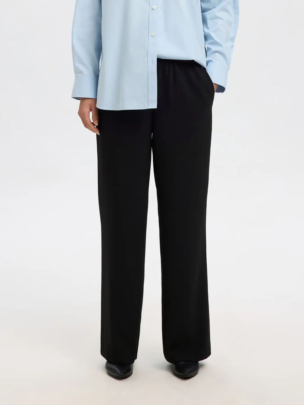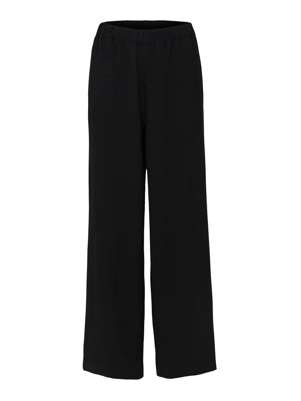 Selected Femme Tinni housut ovat naiselliset ja mukavat housut jokapäiväiseen käyttöön. Housuissa on edessä tyylikkäät vinotaskut ja takana koristetasku tuomassa ryhdikkäämpää ilmettä. Selected Femme Tinni housut ovat miellyttävät käyttää vyötärökappaleessa olevan kuminauhan ansiosta. Housuissa on näyttävät, leveät lahkeet. Yläosaa ja asusteita vaihtamalla Selected Femme Tinni housut sopivat sekä arkeen että juhlaan.