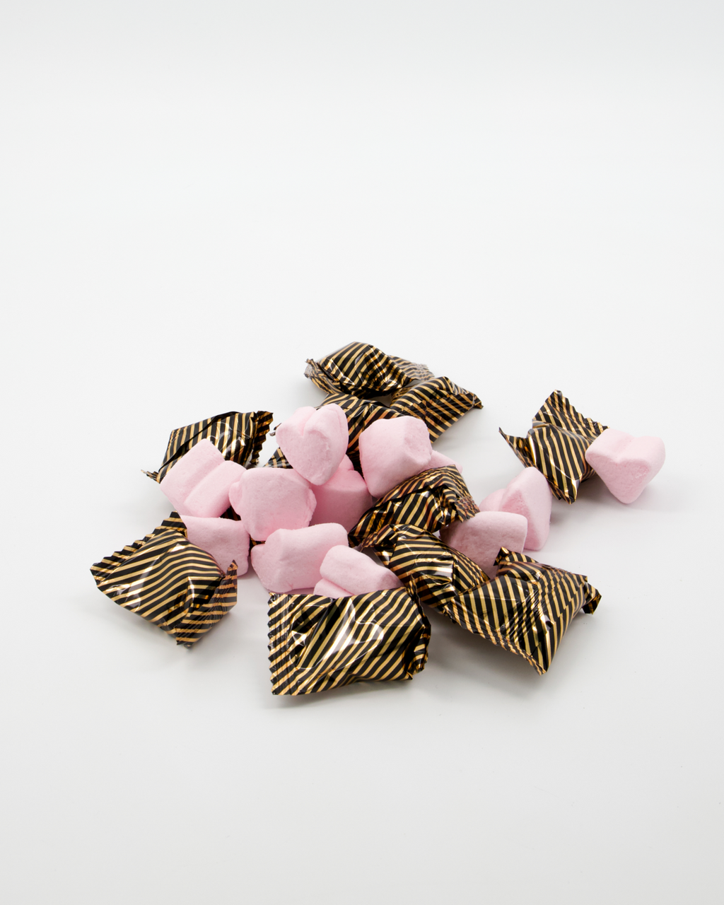 • Shampanja-kaakaotryffeleitä sekä mansikan makuisia vaahtokarkkeja