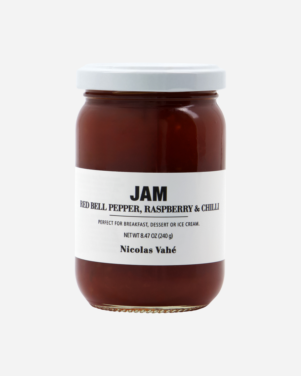 Nicolas Vahé Jam red bell pepper, raspberry & chilli on maukas yhdistelmä paprikan ja vadelman makuista hilloa, johon potkua tuo ripaus chiliä. Kata hillo aamiaispöytään tai juustojen ja keksien kanssa illanistujaisiin. Hillo sopii myös paahtoleivän päällä nautittavaksi. Kaunis lasinen purkki on tyylikäs pitää esillä keittiössä ja aivan ihana lahjaidea.
