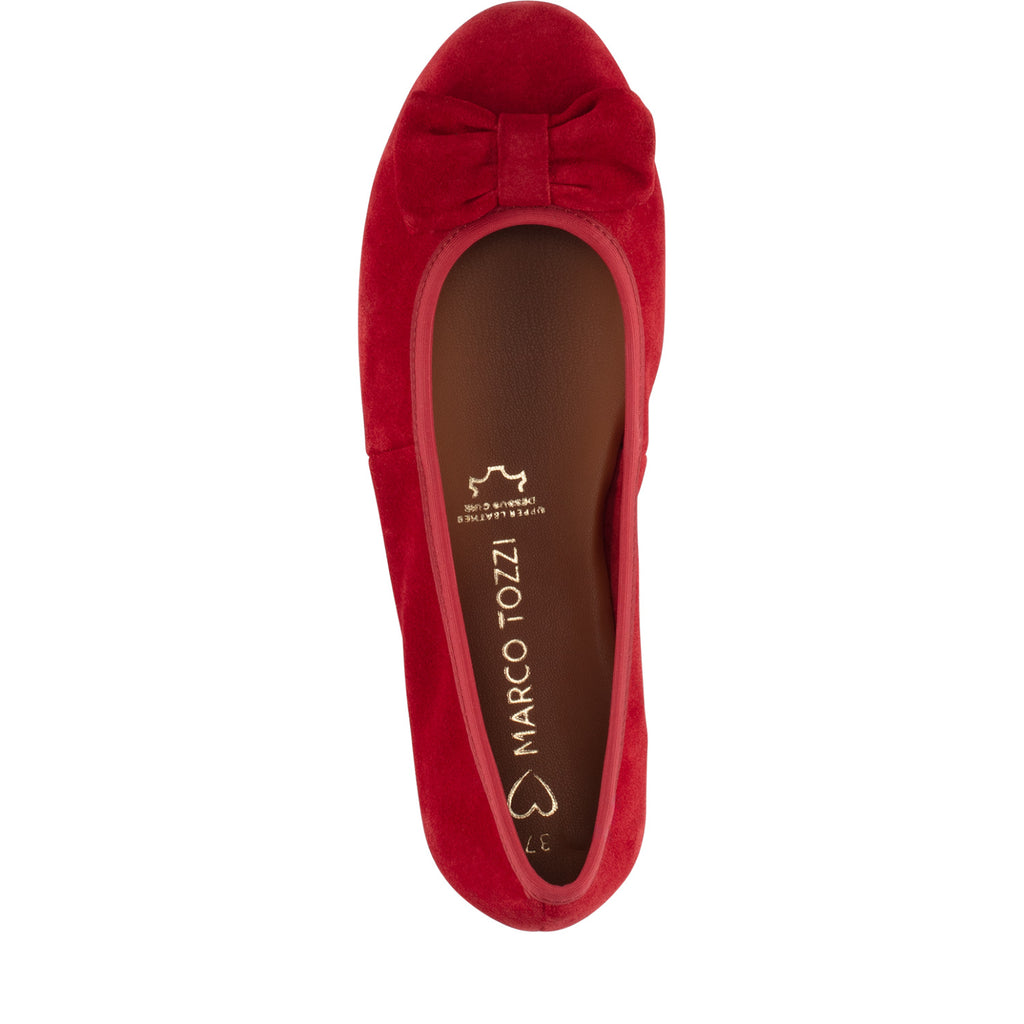 Marco Tozzi ballerinat ovat tyylikkään ajattomat kengät. Ballerinat ovat ihanan pehmeää mokkanahkaa. Marco Tozzi ballerinoissa on mukavat touch it-pohjat ja hieman korotettu pohja, joten ne ovat todella miellyttävät käyttää. Ballerinojen päällä on kauniit rusettikoristeet. Marco Tozzi ballerinat sopivat käytettäväksi kesällä ulkokäytössä sekä ympäri vuoden sisäkenkinä.