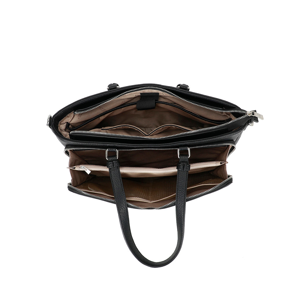 Ulrika Sweden tietokonelaukku on tyylikäs ja riittävän isokokoinen laukku, joka toimii monenlaisessa käytössä ympäri vuoden. Tämän yksinkertaisen tyylikkään laukun tilavat osat sulkeutuvat vetoketjuilla. Laukun sisällä on yksi pieni vetoketjullinen sivutasku ja kaksi pientä avointa sivutaskua. Laukun sisällä on pehmustettu osio, johon mahtuu maksimissaan 14" kannettava tietokone.