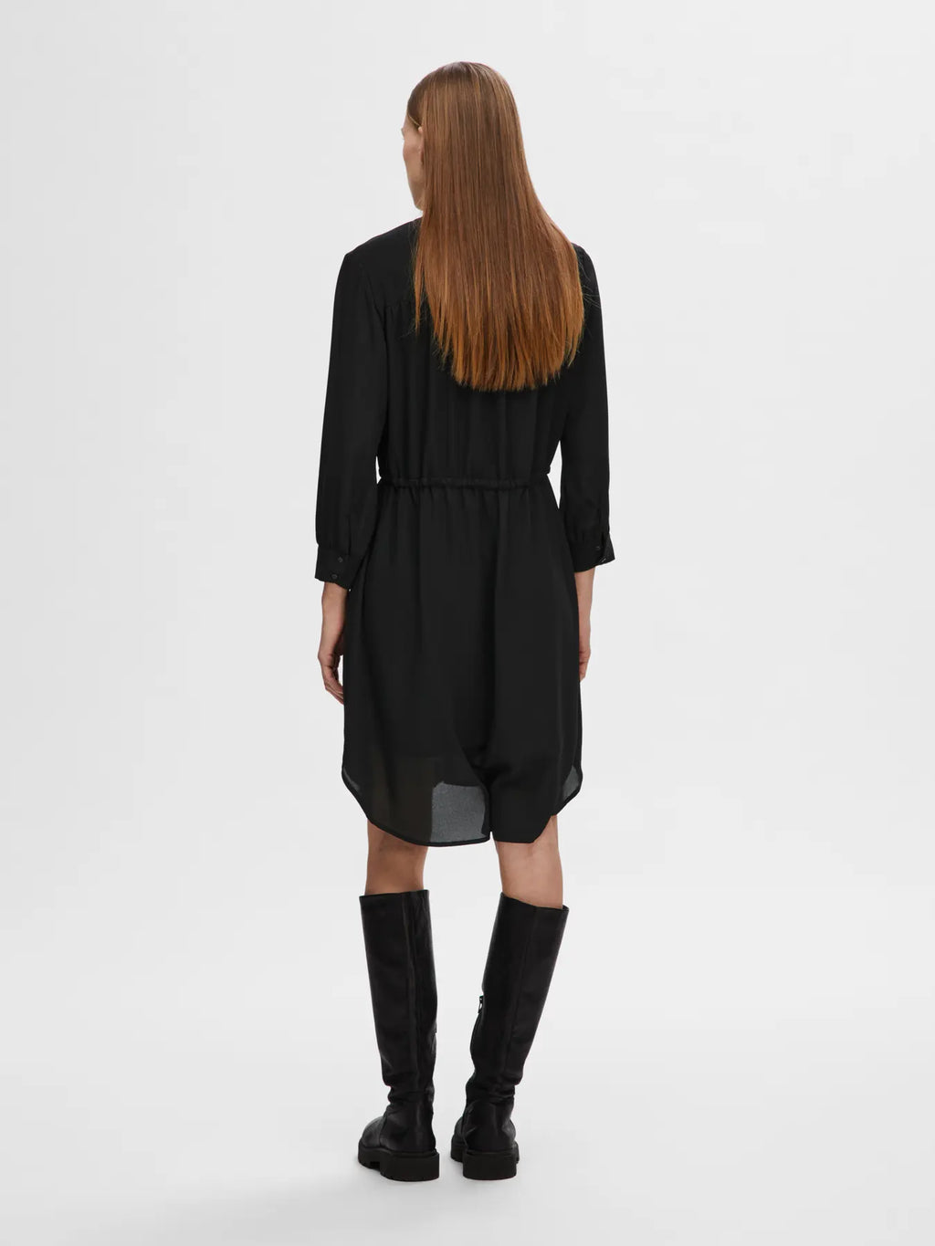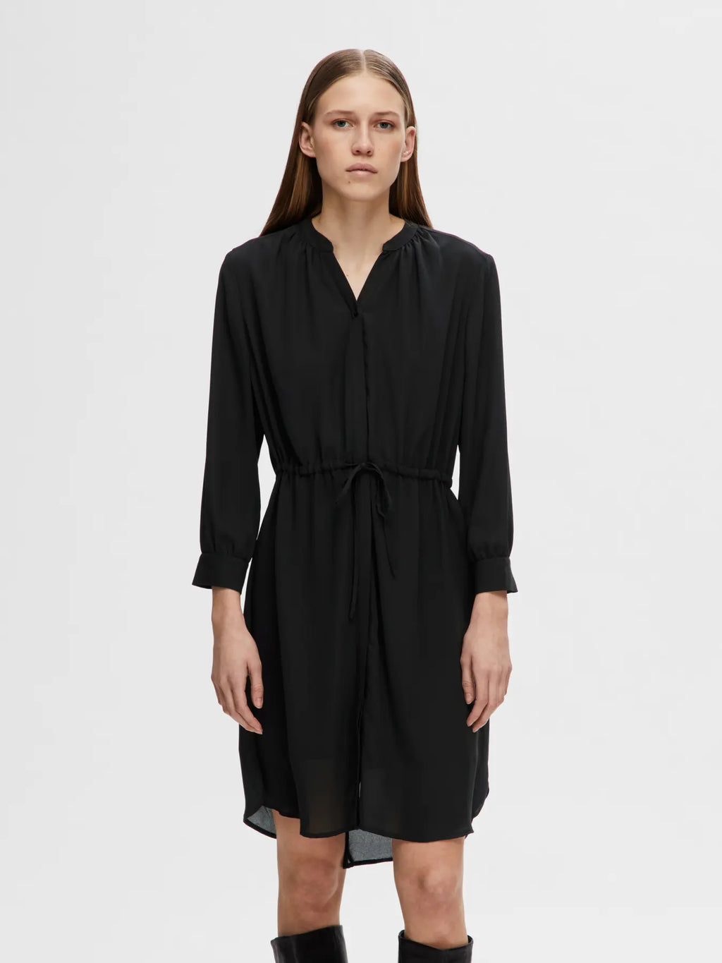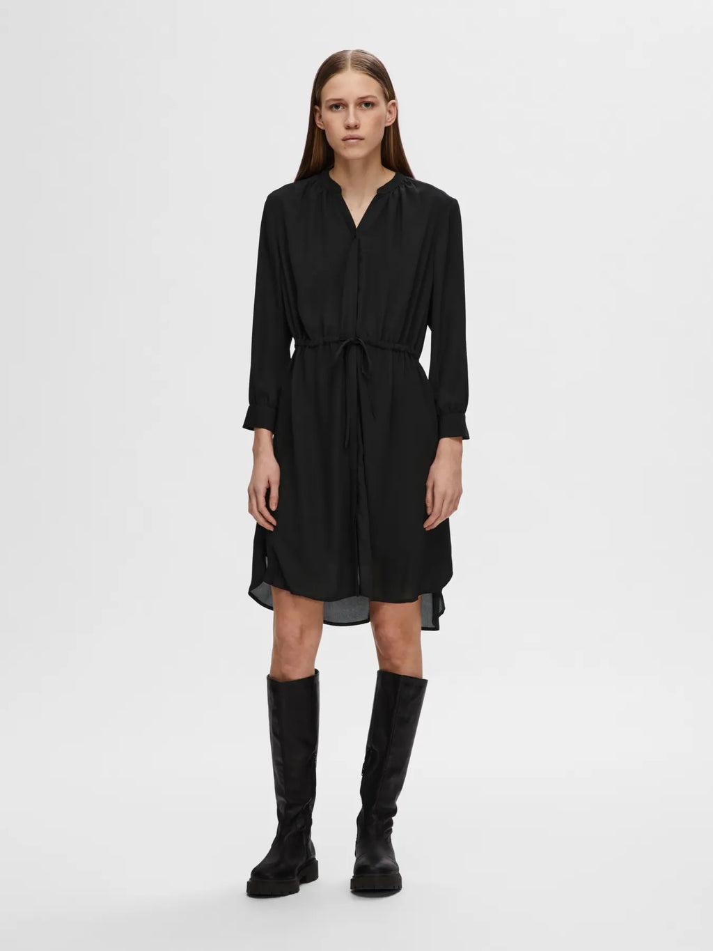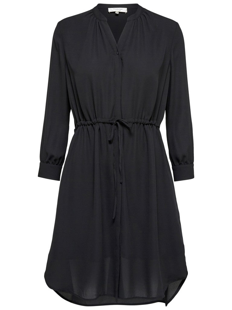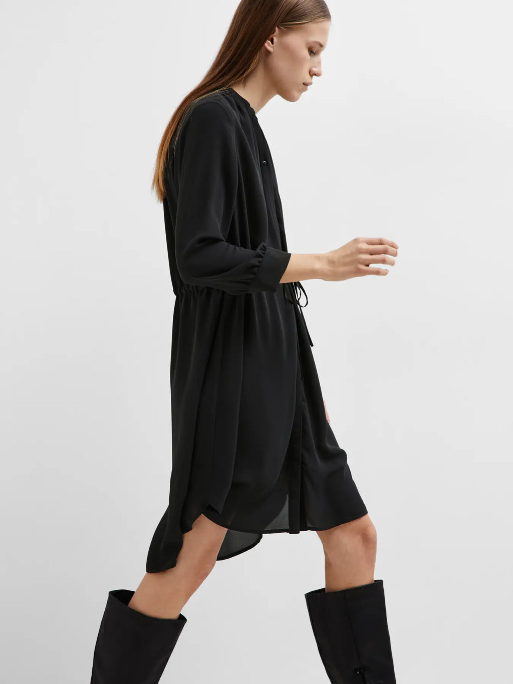 Selected Damina mekko on ajattoman upea vuoritettu paitamekko. Mekossa on edessä piilotettu nappilista ja vyötäröllä kiristysnyöri. Mekon materiaali on joustamatonta ja mekko on vuoritettu hihoja lukuunottamatta. Selected Damina mekon helma on takaa hieman pidempi ja mekon helma on kauniisti pyöristetty. Selected Damina mekon pääntiessä on naisellisia rypytyksiä ja upea kaulus. Voit käyttää Selected Damina mekkoa niin mekkona, tunikana tai auki pidettävänä paitamekkonakin.