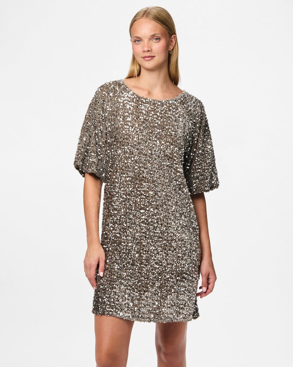 Pieces Kam paljettimekko hurmaa kokonaan paljetein peitetyllä pinnallaan, joka kimaltelee valossa näyttävästi. Suora ja istuva malli korostaa tyylikkäästi siluettiasi ja mekon joustava materiaali takaa mukavuuden koko illaksi. Täydellinen valinta juhliin, illanviettoihin tai muihin erityistilaisuuksiin, joissa haluat erottua. Yhdistä korkokengät ja näyttävät korut, niin tyylisi on valmis vangitsemaan katseet.