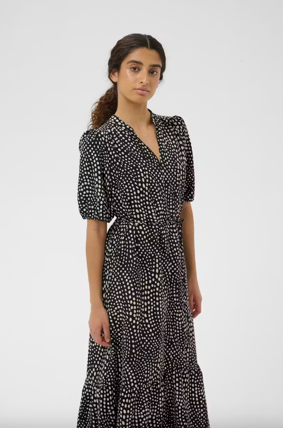 InWear Liberty mekko on näyttävä ja monikäyttöinen lisä vaatekaappiisi. Mekon malli on rennon istuva ja siinä on upea v-aukkoinen kaulus ja puolipitkät hihat, jotka laskeutuvat kauniisti ja peittävät sopivasti. Mekon mukana tulee kapea vyö, jonka voit halutessasi sitoa haluttuun kohtaan vyötärölle. Materiaaliltaan mekko on pehmeää ja sopivan ohutta. Mekko on vuoriton. InWear Liberty mekko on vaatekaappisi monikäyttöinen ihanuus, jonka saat asustettua monenlaiseen menoon.