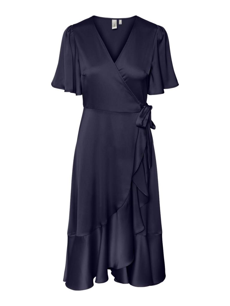 YAS Thea kietaisumekko toimii loistavasti ympärivuotisessa käytössä. Halutessasi pue kietaisumallisen mekon alle ohut toppi tai alusmekko tuomaan peittävyyttä rinnan alueelle.