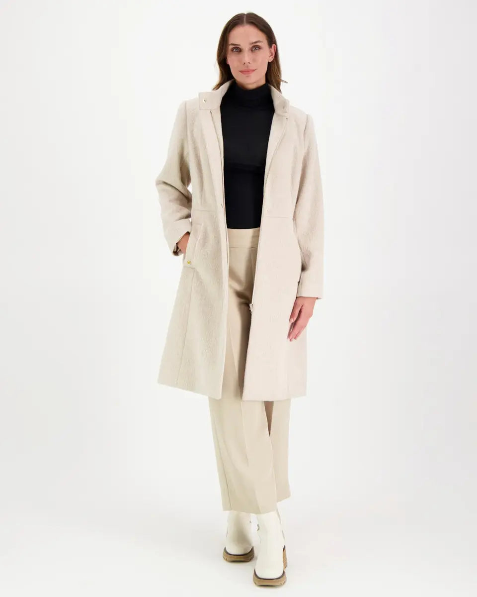 PBO (Philosophy Blues Original) Gifnia villakangastakki on laadukas välikausitakki ja yksi klassisen tyylin tärkeimpiä kulmakiviä. Villakangastakin materiaalista suurin osa on villaa, joten takin käyttömukavuus ja lämpöarvo on taattu. PBO Gifnia villakangastakki on vuoritettu ja takissa on tyylikäs pystykaulus sekä piilotettu nappirivi ja vetoketju. PBO Gifnia villakangastakkiin toiminnallisuutta tuovat taskut takin etuosassa. Villakangastakin malli on kauniisti vartaloa korostava. Voit käyttää villakangastakkia asun kuin asun kanssa ja kylmemmillä ilmoilla voit pukea villakangastakin alle ohuen untuvaliivin tuomaan lisälämpöä.