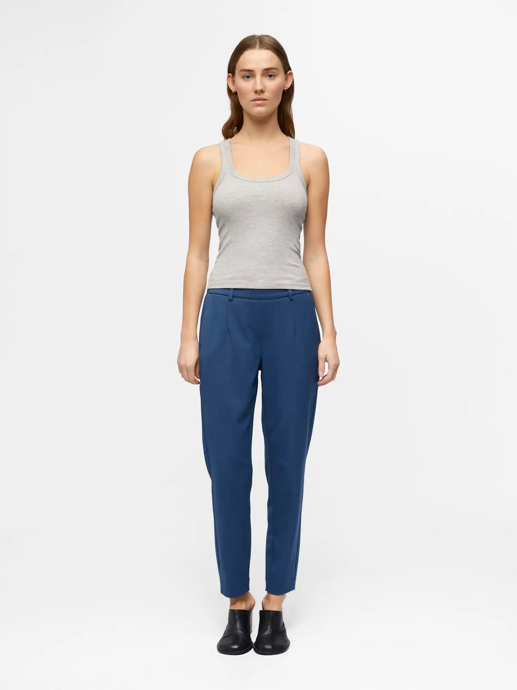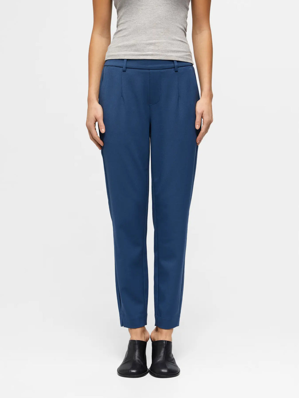 Object Lisa housut ovat naiselliset ja mukavat housut jokapäiväiseen käyttöön. Housuissa on edessä tyylikkäät vinotaskut ja takana koristetaskut tuomassa ryhdikkäämpää ilmettä. Housujen nilkkapituisissa, kapeissa lahkeissa on lahkeensuissa pienet halkiot. Object Lisa housut ovat miellyttävät käyttää vyötärökappaleen takana olevan kuminauhan ansiosta. Halutessasi kiristää vyötäröä voit käyttää housuja vyön kanssa.