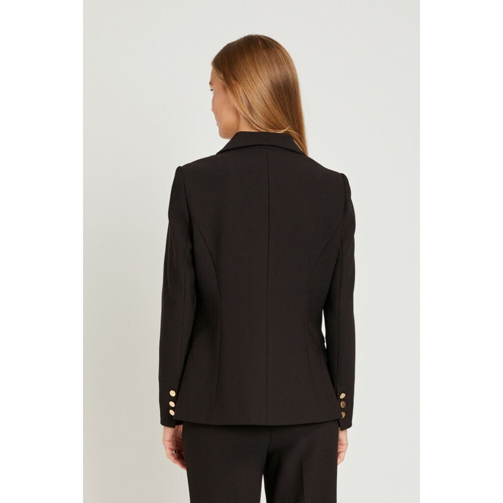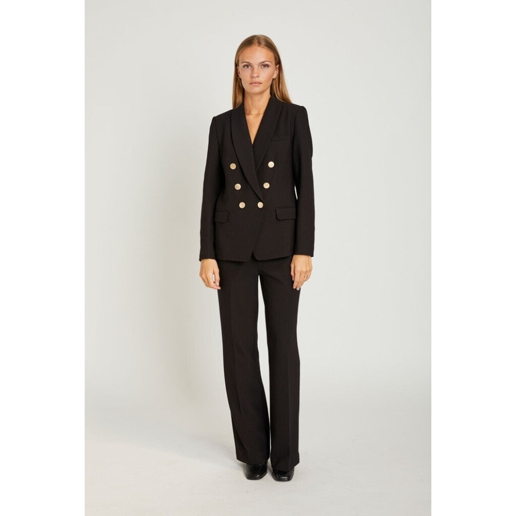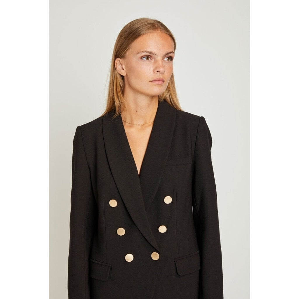 Rue de Femme Eloise bleiseri on tyylikäs ja vuoritettu jakku sisä- ja ulkokäyttöön. Bleiserin malli on ihanan naisellinen ja joustavan kankaan ansiosta se istuu päälle täydellisesti. Rue de Femme Eloise bleiseri laskeutuu kauniisti lantiolinjan alapuolelle ja siinä on edessä läppätaskut. Bleiseri on tyköistuvaa mallia ja siinä on kullansävyiset napit edessä ja hihoissa. Rue de Femme Eloise bleiserin helma on kauniisti pyöristetty ja takana on naisellinen halkio. Tyylikkäästi viimeistellyllä bleiserillä tuot mielenkiintoa ja tyyliä asuun kuin asuun.