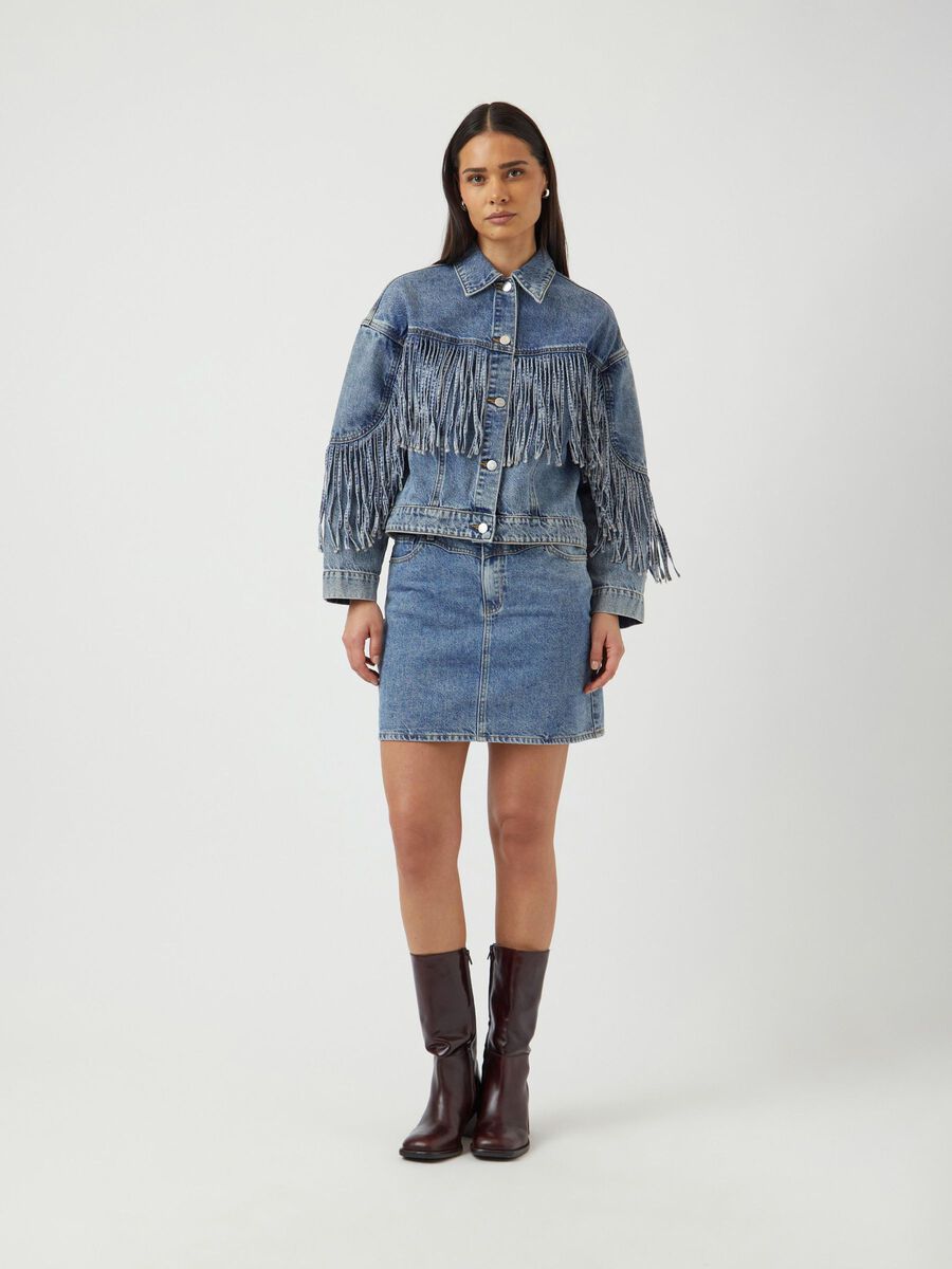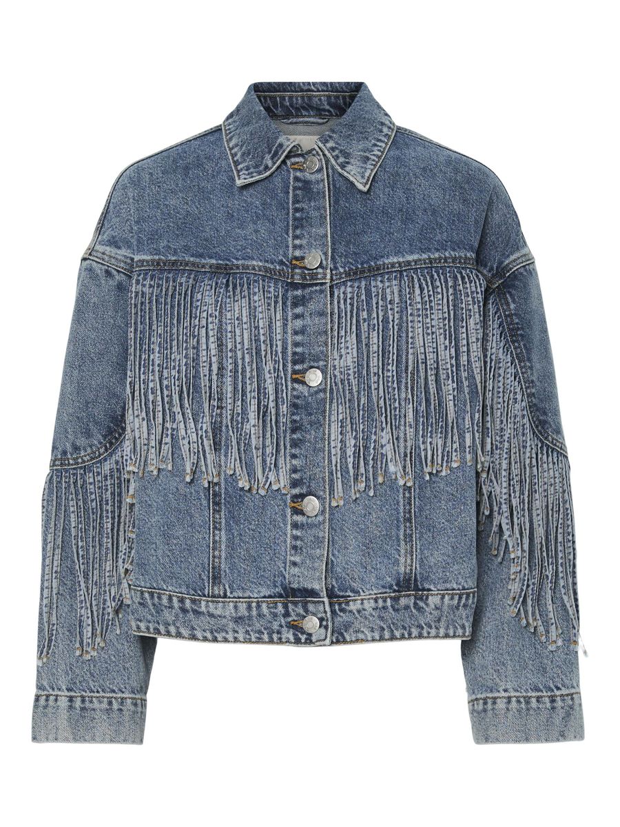 Näyttävä YAS Aiko farkkutakki hapsuilla tuo klassiseen denimiin trendikästä ilmettä. Hapsuyksityiskohdat tekevät takista persoonallisen katseenvangitsijan, joka sopii täydellisesti niin arkeen kuin rentoon juhlatyyliin.