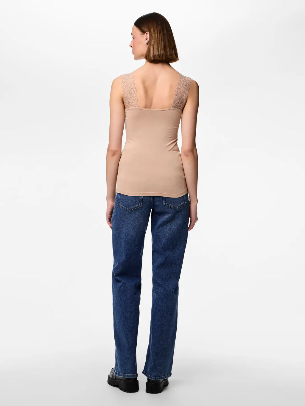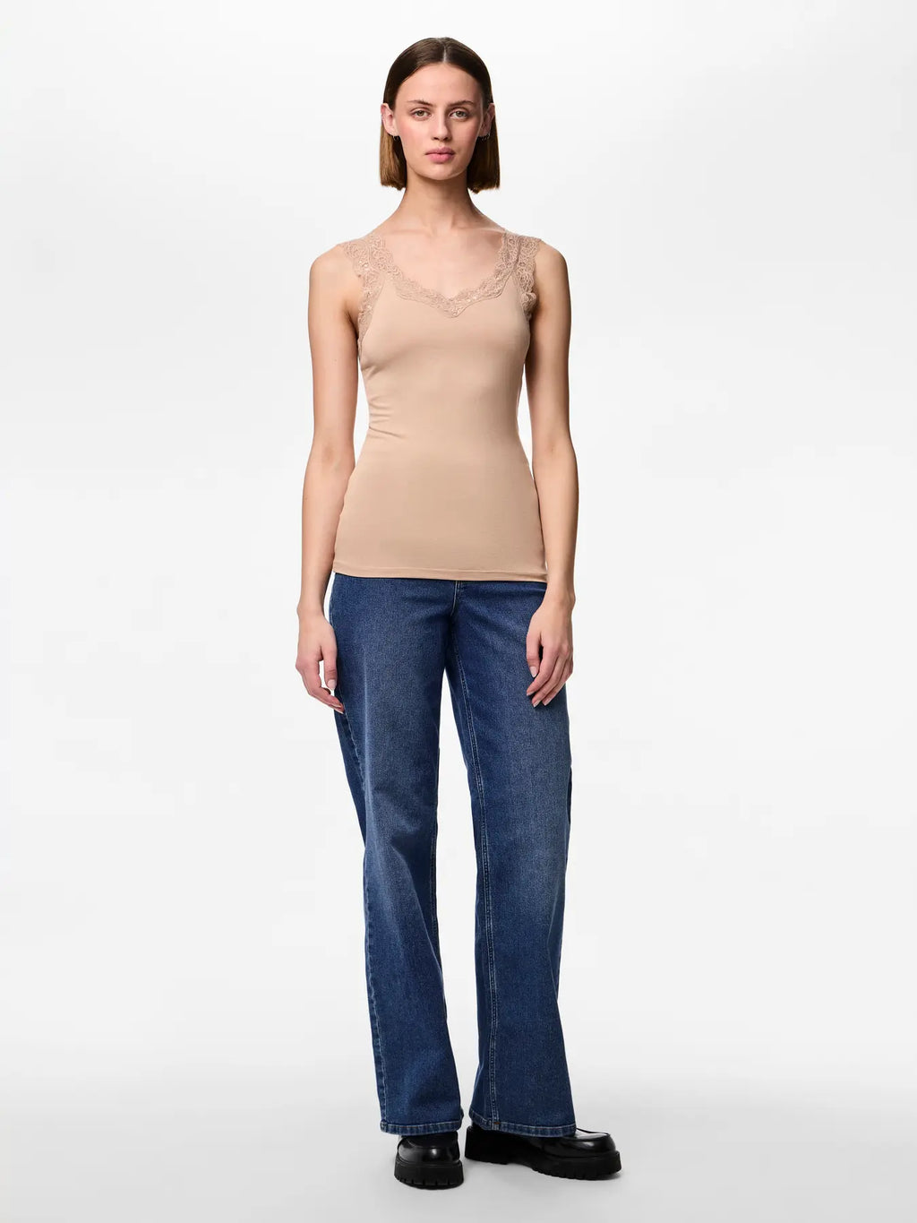 Pieces Barbera toppi pitsisellä reunuksella on tyylikäs alustoppina tai sellaisenaan. Topissa on ihanan miellyttävän pehmeä pinta ja sen kangas on erittäin joustava. Pieces Barbera topin pitsireuna saa huoletta näkyä päälle puetun vaatteen alta antaen ilmettä asullesi niin, että pitsireunus pilkistää vaatteen alta.