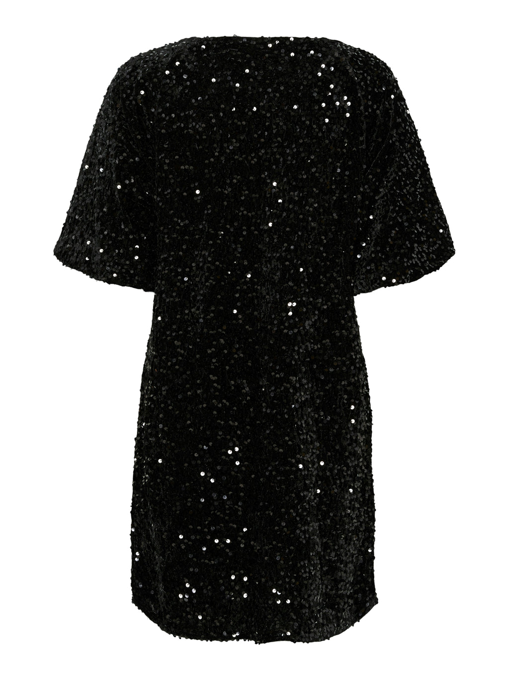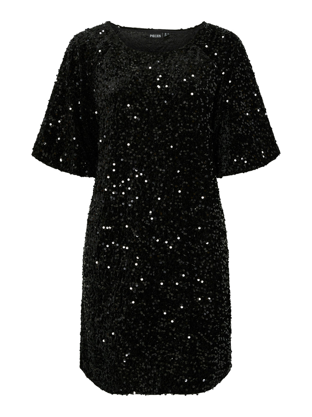 Pieces Kam paljettimekko hurmaa kokonaan paljetein peitetyllä pinnallaan, joka kimaltelee valossa näyttävästi. Suora ja istuva malli korostaa tyylikkäästi siluettiasi ja mekon joustava materiaali takaa mukavuuden koko illaksi. Täydellinen valinta juhliin, illanviettoihin tai muihin erityistilaisuuksiin, joissa haluat erottua. Yhdistä korkokengät ja näyttävät korut, niin tyylisi on valmis vangitsemaan katseet.