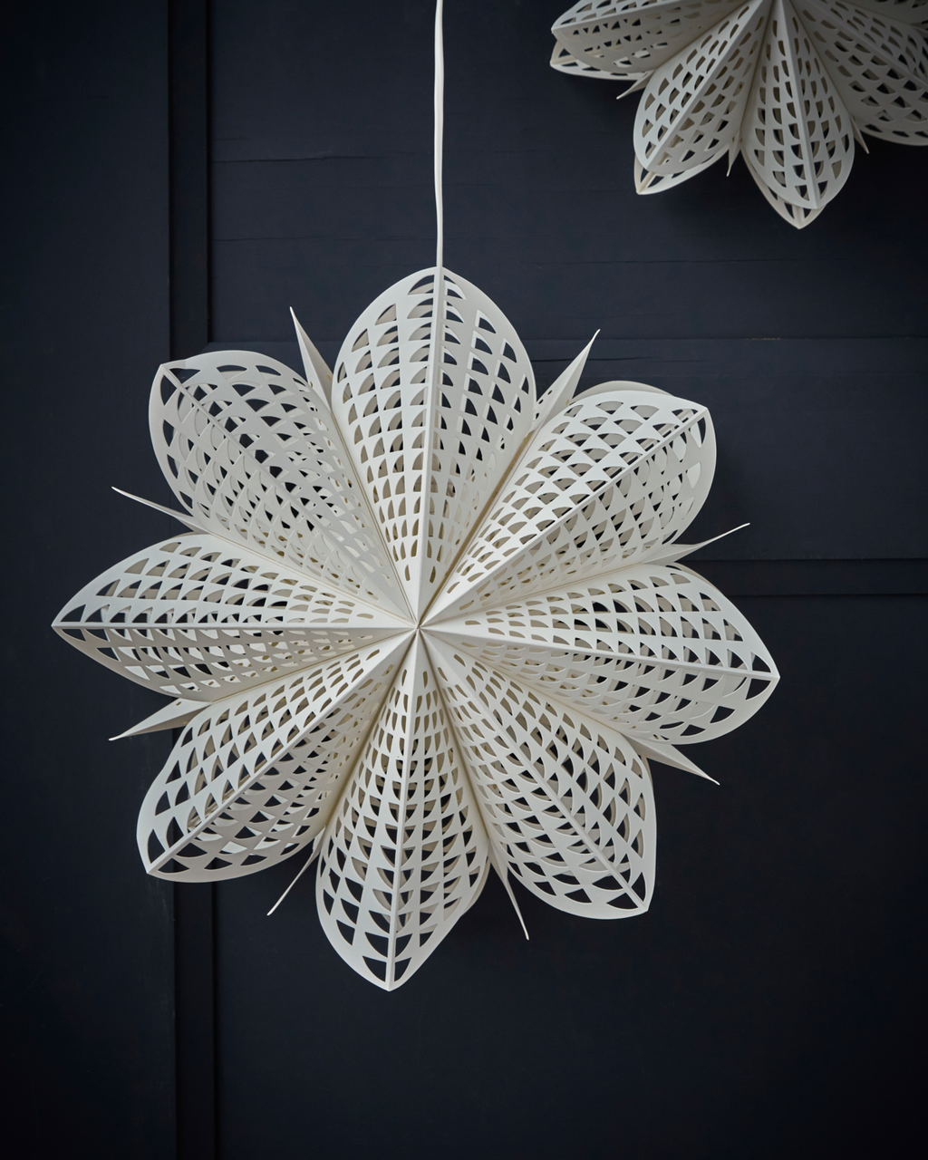 Leikattujen yksityiskohtien ja ajattoman valkoisen värin ansiosta tämä House Doctorin käsintehty paperitähti antaa kotiisi ihanan ilmeen. Ripusta moderni tähti olohuoneesi ikkunaan tai aseta se lipaston päälle muuttaaksesi kotisi juhlavaksi tilaksi.