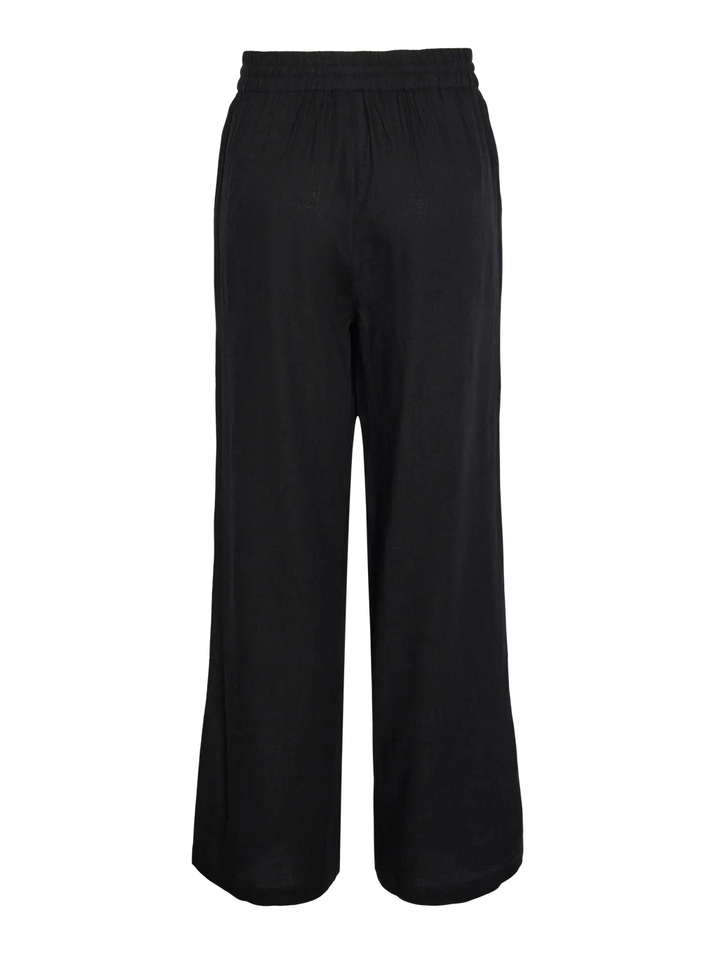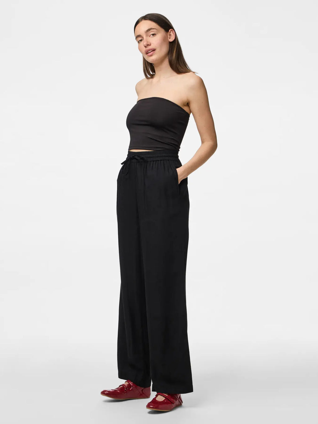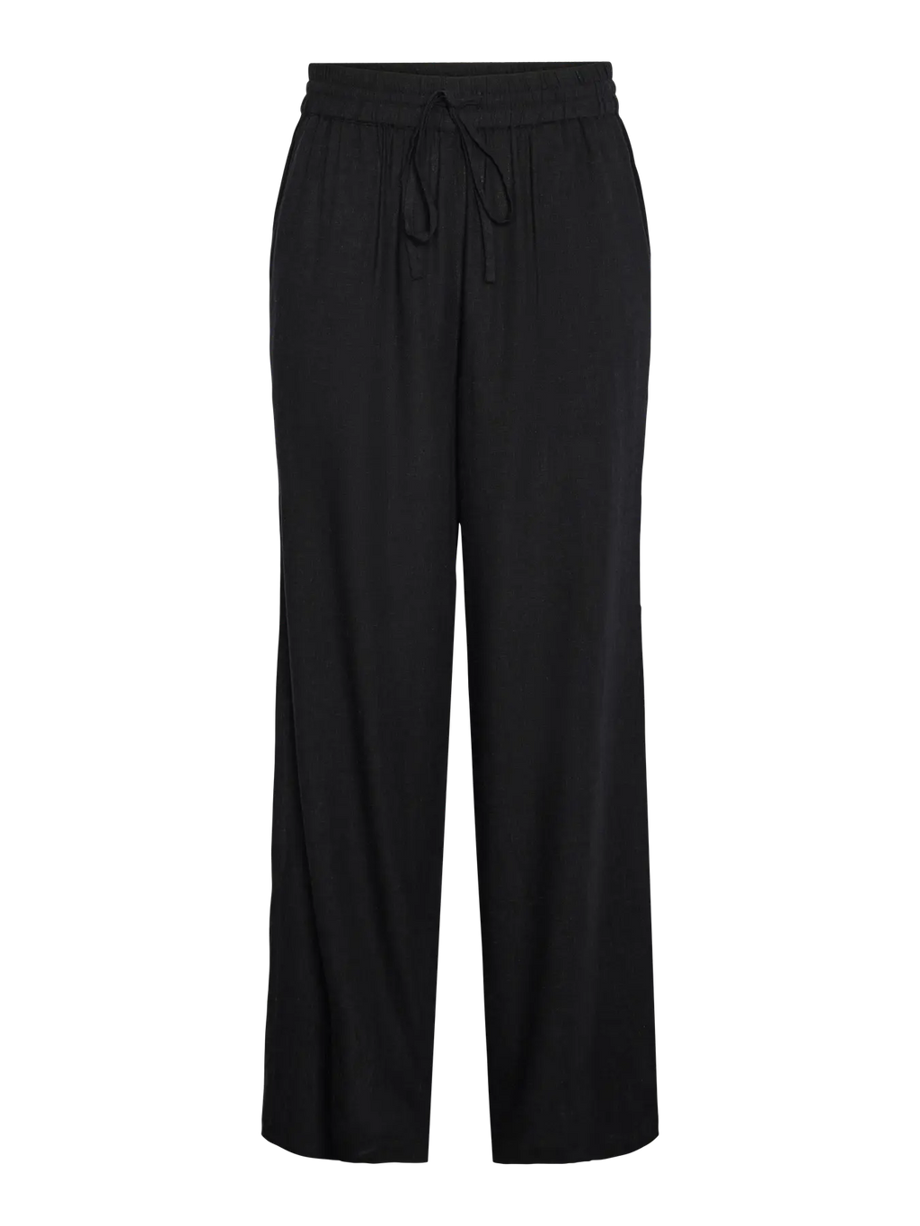 Pieces Pia housut ovat ajattoman upeat ja kauniit ohuet housut. Housuissa on joustava vyötärö ja edessä sivutaskut. Housujen leveät lahkeet ovat täyspitkät ja kauniisti viimeistellyt. Pieces Pia housujen materiaali on pehmeää ja hengittävää pellava/viskoosi-sekoitetta ja ne ovat ihanan keveät käyttää. Housujen klassinen malli sopii yhdistää monenlaiseen tyyliin. Pue Pieces Pia housut rennon neuleen kanssa tai yhdistä ne siistimpään paitaan asiallisemman tyyliin aikaansaamiseksi.