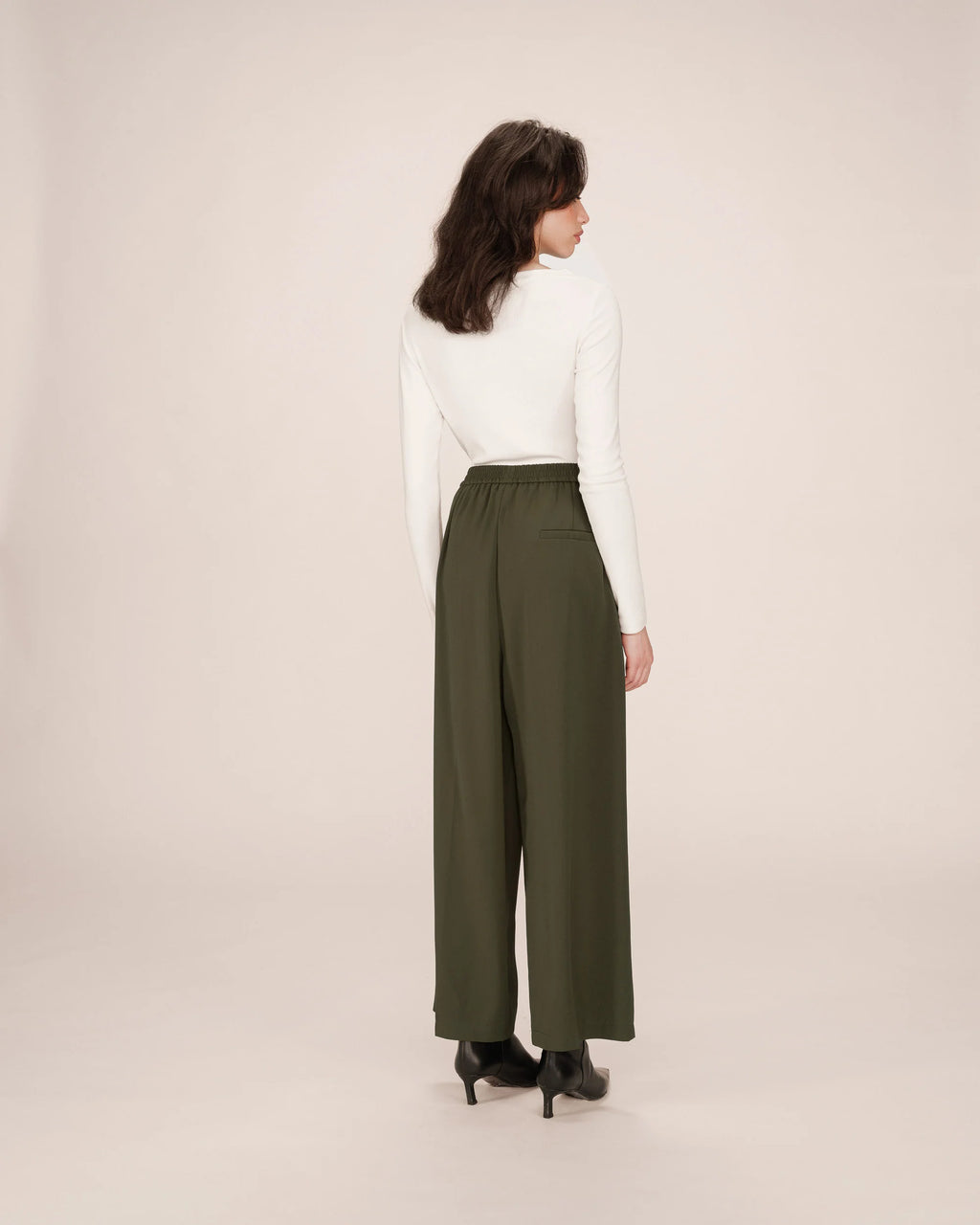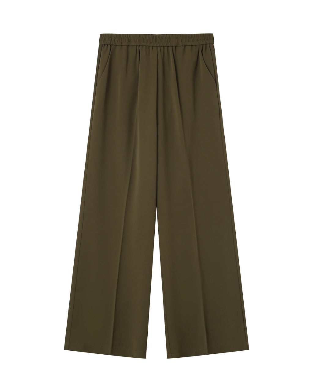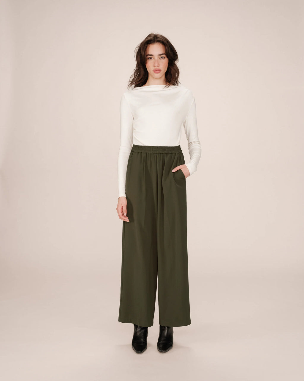 Grace & Mila Picasso housut ovat naiselliset ja mukavat housut jokapäiväiseen käyttöön. Housuissa on edessä käytännölliset vinotaskut ja takana koristetasku tuomassa ryhdikkäämpää ilmettä. Grace & Mila Picasso housut ovat miellyttävät käyttää vyötärökappaleessa olevan kuminauhan ansiosta. Housuissa on näyttävät, täyspitkät ja leveät lahkeet. Grace & Mila Picasso housuihin sopii yhdistää niin klassinen kauluspaita, rennompi oversize mallinen neulepaita tai perus t-paitakin. Yläosaa ja asusteita vaihtamalla Grace & Mila Picasso housut sopivat sekä arkeen että juhlaan.