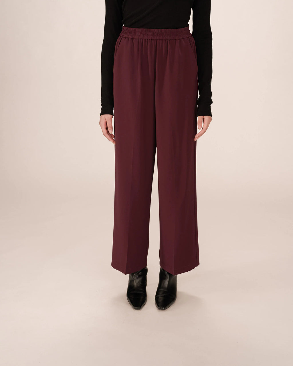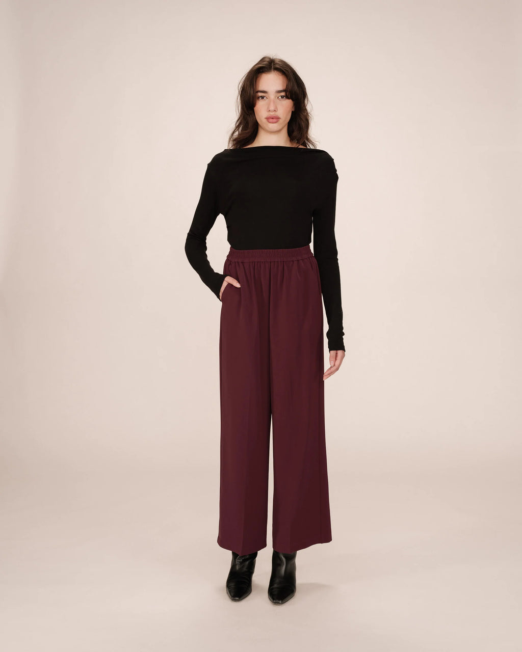 Grace & Mila Picasso housut ovat naiselliset ja mukavat housut jokapäiväiseen käyttöön. Housuissa on edessä käytännölliset vinotaskut ja takana koristetasku tuomassa ryhdikkäämpää ilmettä. Grace & Mila Picasso housut ovat miellyttävät käyttää vyötärökappaleessa olevan kuminauhan ansiosta. Housuissa on näyttävät, täyspitkät ja leveät lahkeet. Grace & Mila Picasso housuihin sopii yhdistää niin klassinen kauluspaita, rennompi oversize mallinen neulepaita tai perus t-paitakin. Yläosaa ja asusteita vaihtamalla Grace & Mila Picasso housut sopivat sekä arkeen että juhlaan.