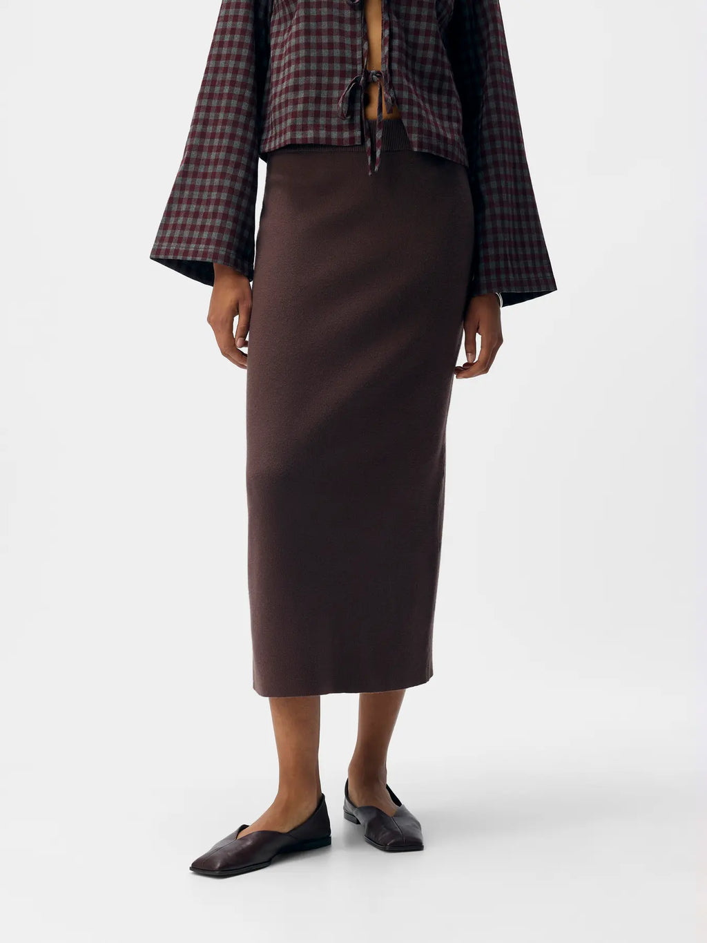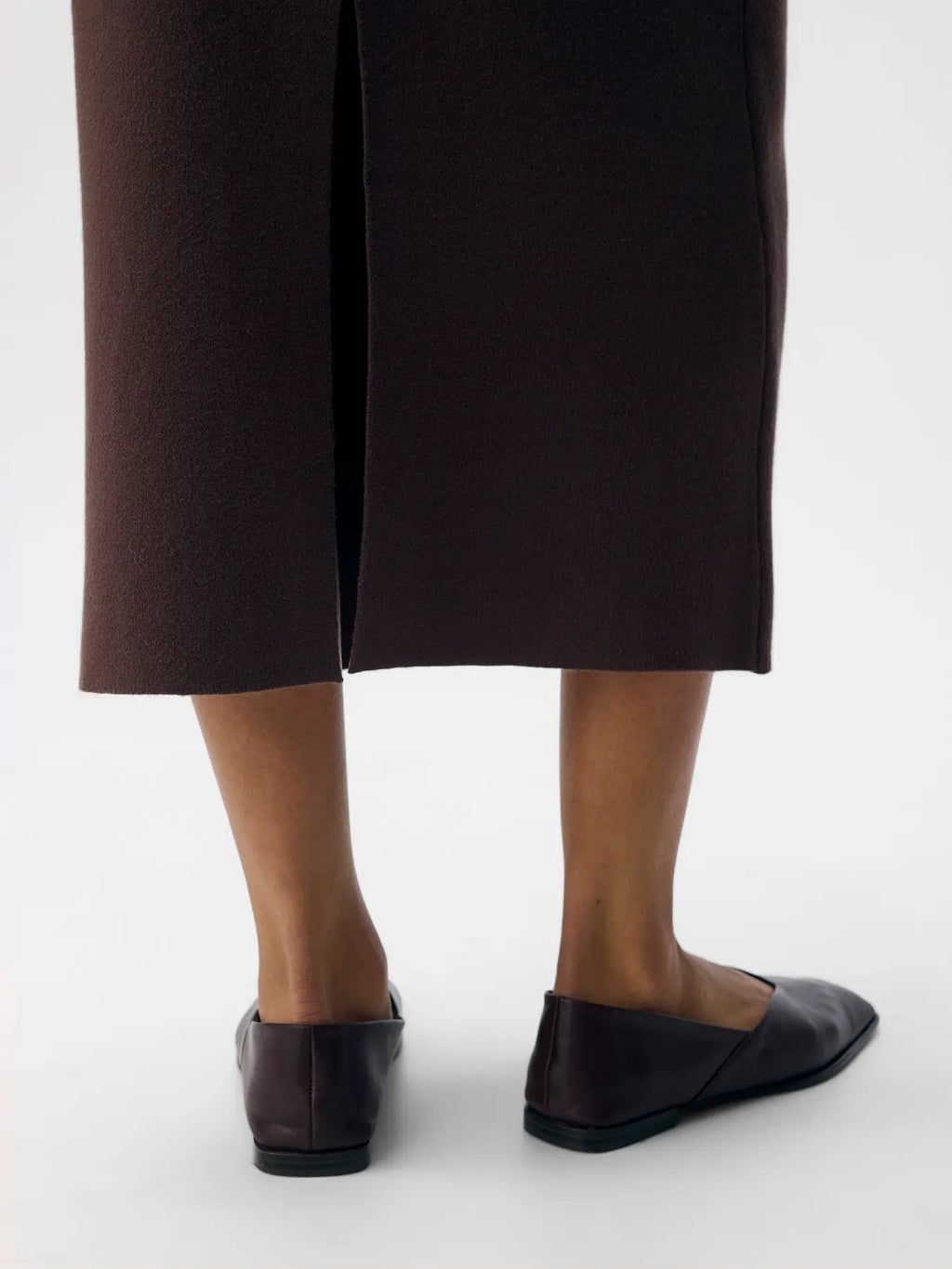 Object Reynard neulehame on naisellisen upea alaosa moneen menoon. Hameessa on miellyttävän pehmeä materiaali ja se on mukavan napakka ja joustava päällä. Object Reynard hameen malli on klassinen suora malli ja siinä on vyötäröllä leveä kuminauha. Mielenkiintoa hameeseen tuo takaosan näyttävä halkio.