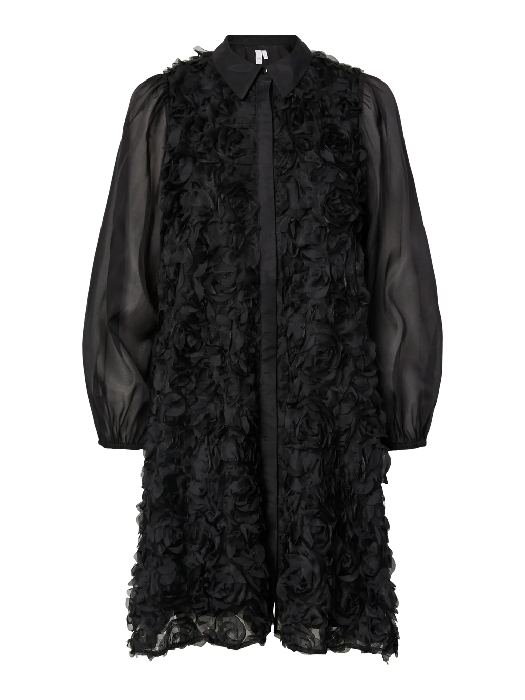 Naisellisen upea YAS Rosso mekko sopii moneen menoon. Mekossa on kaulukset, nappilista edessä ja kauniisti laskeutuva rento malli. Näyttävyyttä YAS Rosso mekkoon tuovat kankaaseen kiinniommellut ruusukkeet. Mekossa on upeat vajaamittaiset hihat. YAS Rosso mekko on vaatekaappisi monikäyttöinen ihanuus ja se sopii loistavasti ympärivuotiseen käyttöön.