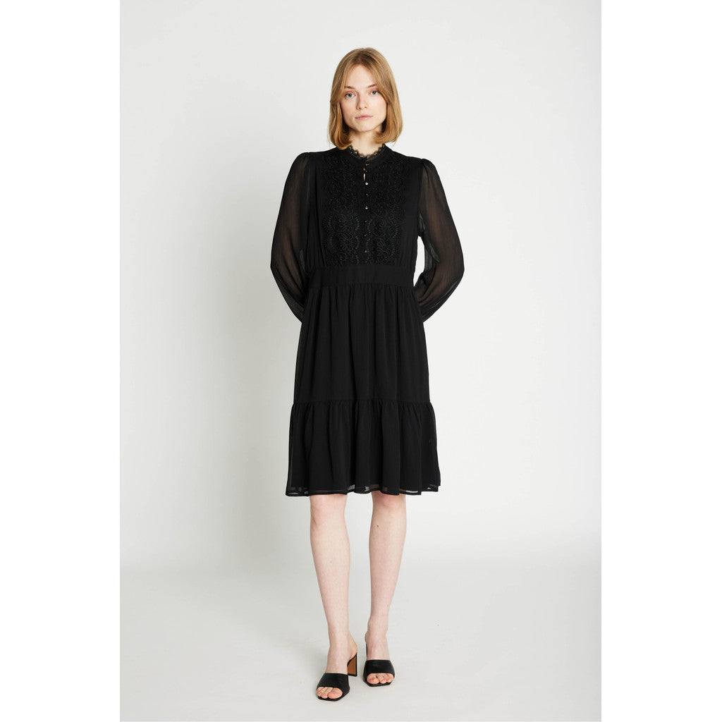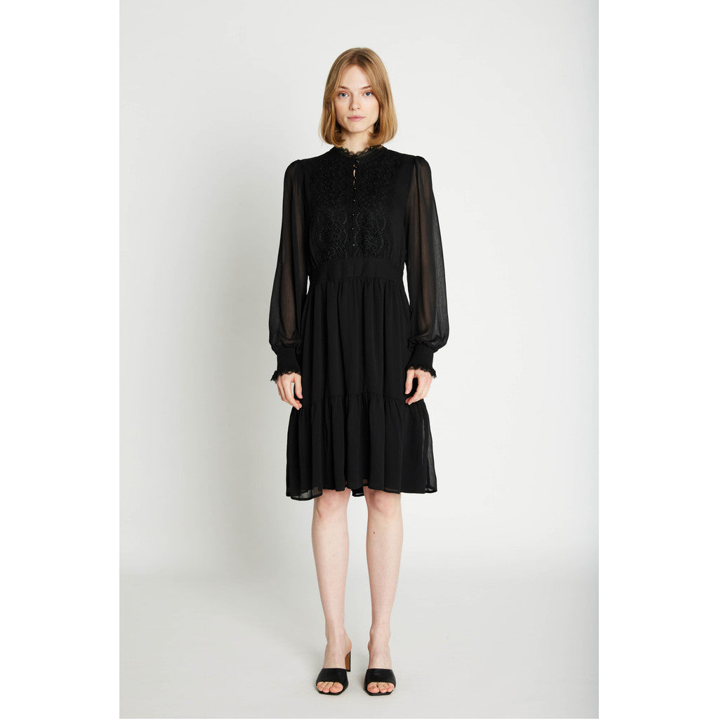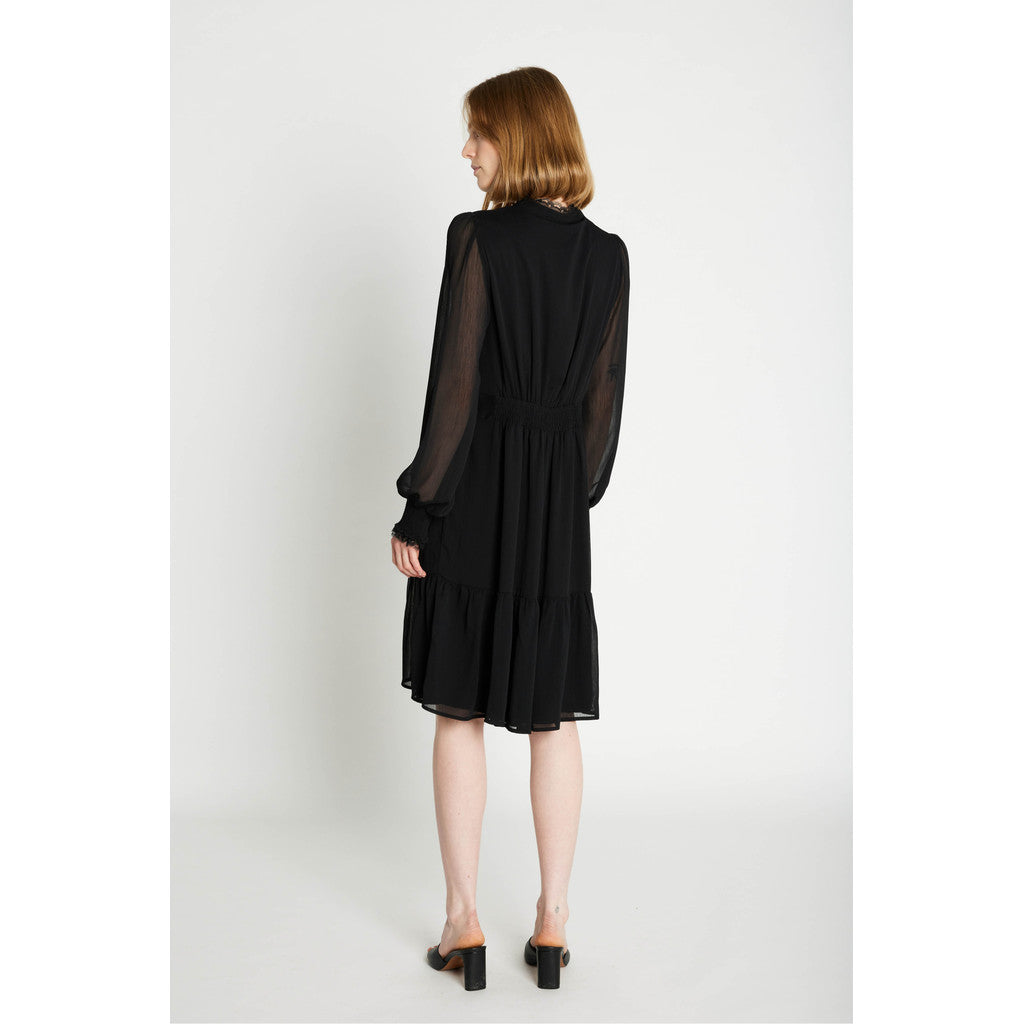 Rue de Femme Sigrida mekko on modernin naisellinen valinta arkeen ja juhlaan. Mekossa on kauniisti laskeutuva materiaali ja rento mutta huoliteltu siluetti, joka istuu monenlaisiin tilanteisiin. Pussittuvat hihat saavat muotonsa hihansuissa olevasta kuminauharypytyksestä, joka tuo asuun ilmavuutta ja pehmeyttä. Pyöreä pääntie ja siistit leikkaukset viimeistelevät Rue de Femme Sigrida mekon hillityn elegantin ilmeen. Rue de Femme Sigrida mekko on helppo stailata – yhdistä arkena nilkkureihin tai tennareihin ja vaihda korkkareihin juhlavampaa hetkeä varten.