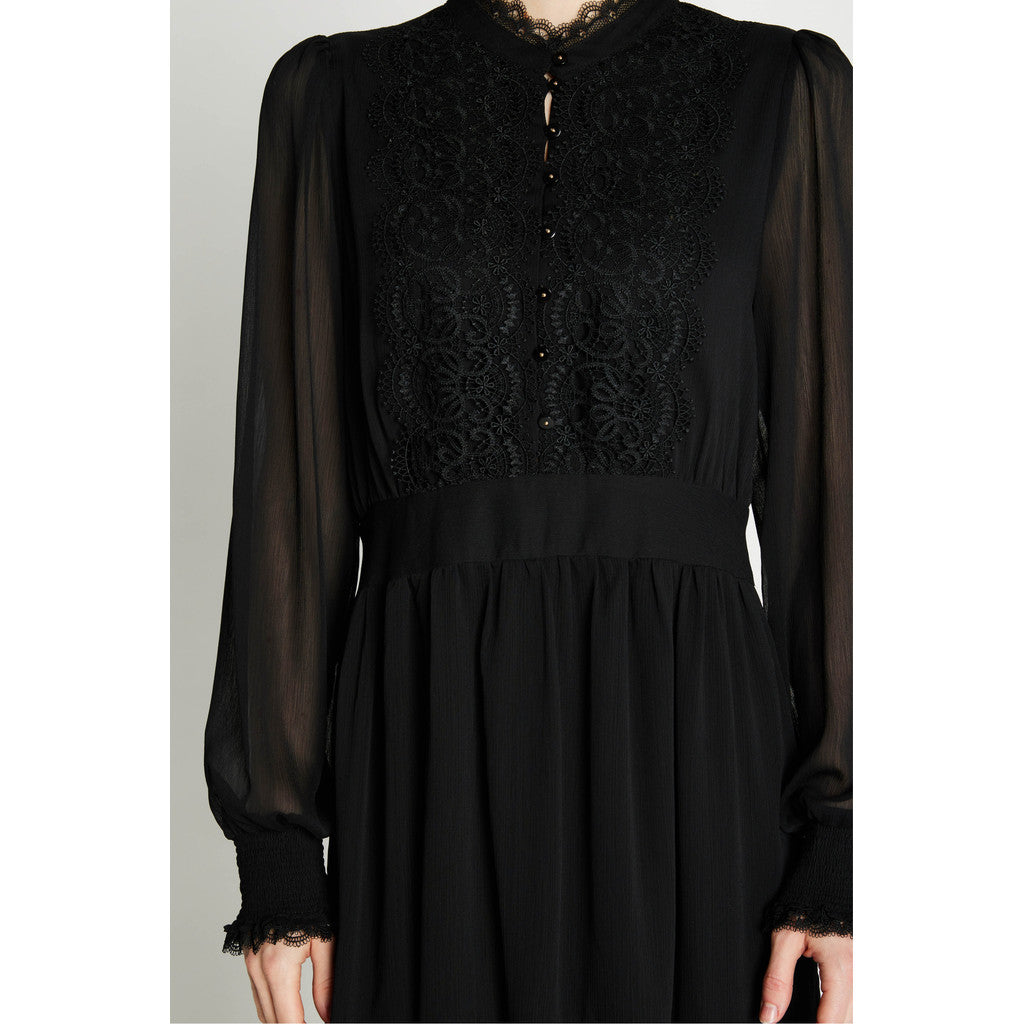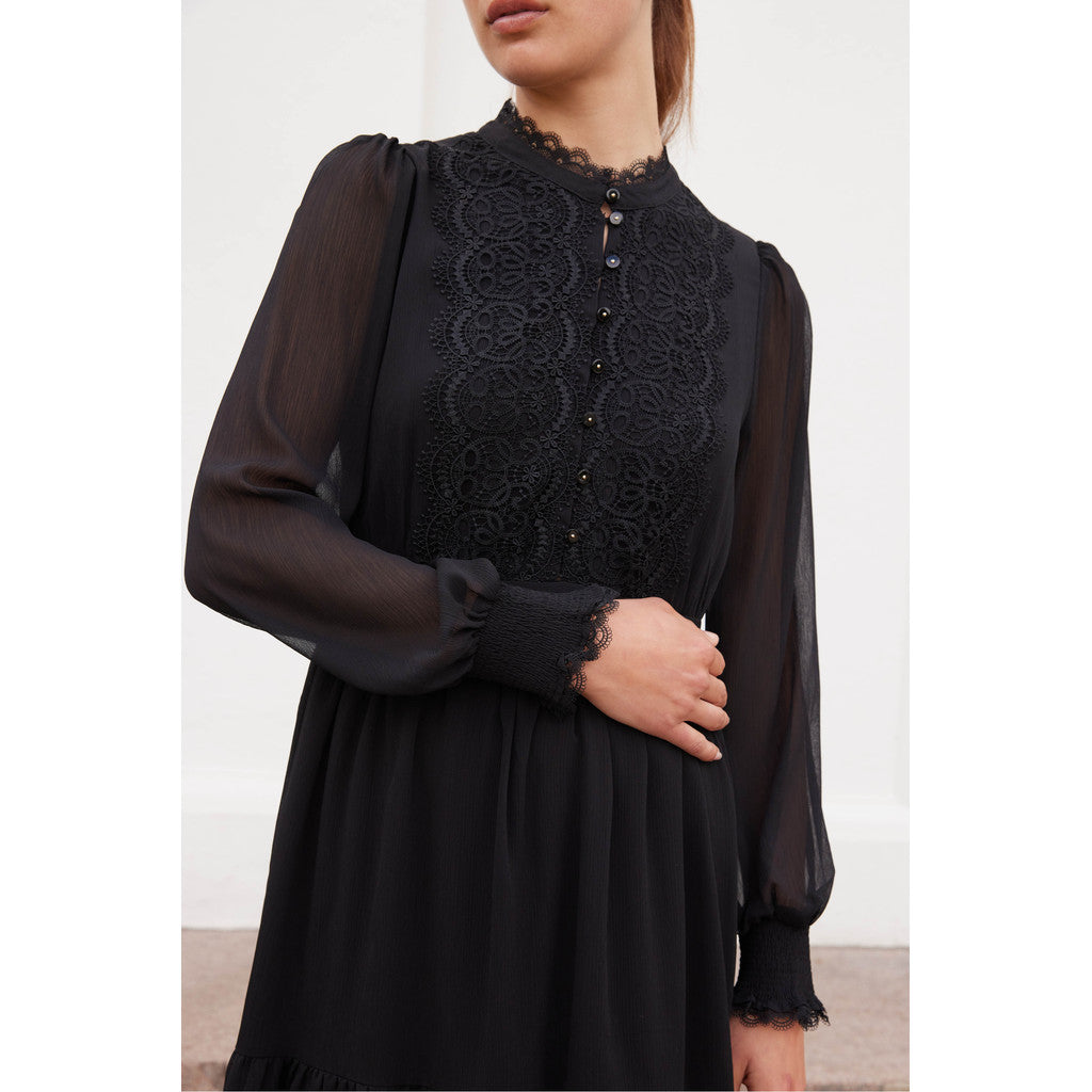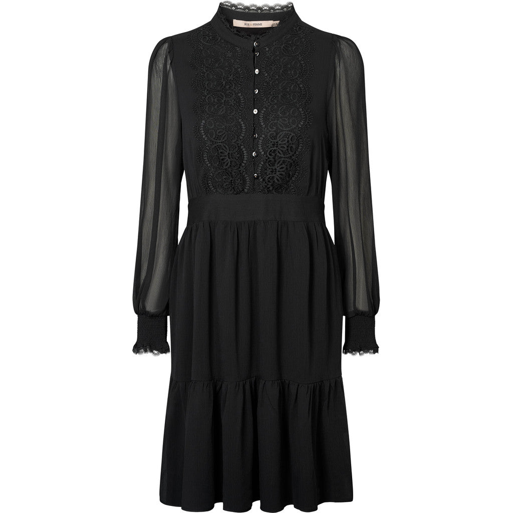 Rue de Femme Sigrida mekko on modernin naisellinen valinta arkeen ja juhlaan. Mekossa on kauniisti laskeutuva materiaali ja rento mutta huoliteltu siluetti, joka istuu monenlaisiin tilanteisiin. Pussittuvat hihat saavat muotonsa hihansuissa olevasta kuminauharypytyksestä, joka tuo asuun ilmavuutta ja pehmeyttä. Pyöreä pääntie ja siistit leikkaukset viimeistelevät Rue de Femme Sigrida mekon hillityn elegantin ilmeen. Rue de Femme Sigrida mekko on helppo stailata – yhdistä arkena nilkkureihin tai tennareihin ja vaihda korkkareihin juhlavampaa hetkeä varten.