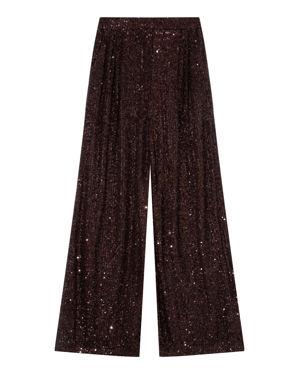 Grace & Mila Toby paljettihousut ovat naiselliset ja näyttävät housut juhlavaan tai jokapäiväiseen käyttöön. Leveälahkeisissa housuissa on korkea joustovyötärö, laskokset vyötäröllä sekä suorat, leveät lahkeet. Käytännöllisyyttä Grace & Mila Toby housuihin tuovat sivutaskut. Paljettihousuihin sopii yhdistää niin klassinen kauluspaita, rennompi oversize mallinen neulepaita tai juhlavampi yläosa ja housut ovat aina tyylikkäät käyttää. Asusteita vaihtamalla Grace & Mila Toby housut sopivat sekä arkeen että juhlaan.