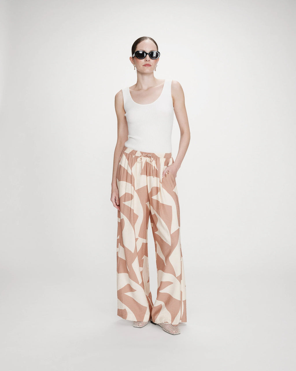 Grace & Mila Veni housut ovat keveät ja vilpoisat päälläsi. Housuissa on vyötäröllä kuminauha ja kiristyskuja, joten ne ovat miellyttävät päällä ja vyötärökorkeuden saa asetettua itselle sopivalle kohdalle. Grace & Mila Veni housujen materiaali on ihanan hengittävä ja niiden leveät lahkeet ovat kauniisti laskeutuvat ja täyspitkät. Housuihin rentoutta tuovat viistot sivutaskut. Yhdistä Grace & Mila Veni housut rennon neuleen kanssa tai yhdistä ne siistimpään paitaan juhlavamman tyyliin aikaansaamiseksi. Kenkiä vaihtamalla saat muutettua housujen ilmettä hetkessä.